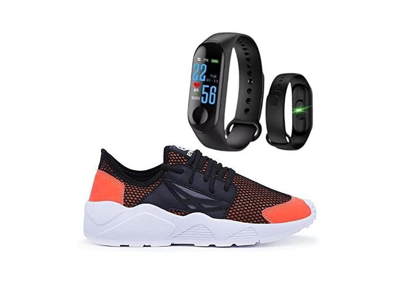 Tênis Caminhada Corrida Leve Macio Confortável Fitness Academia + Pulseira Inteligente M3 - Preto - 44