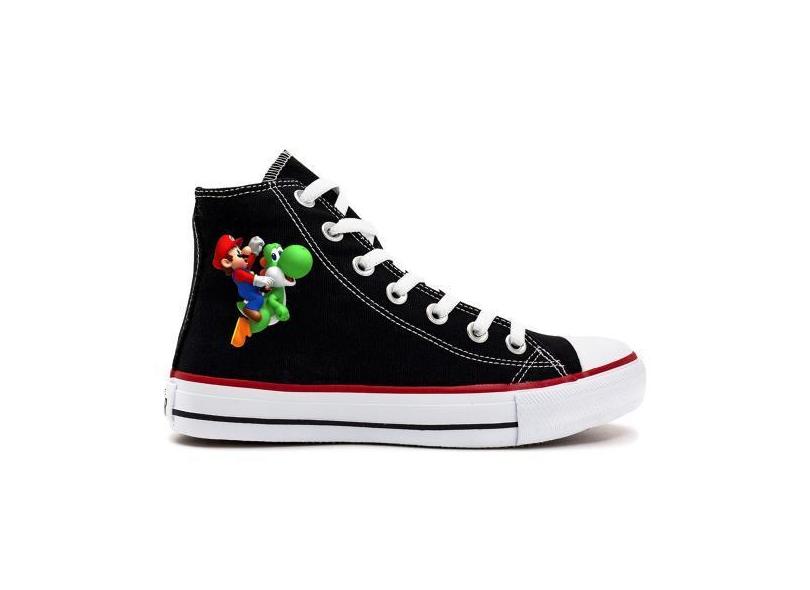Tenis Cano Alto Adulto Infantil Mario Bros & Yoshi - StarSingle, Preto