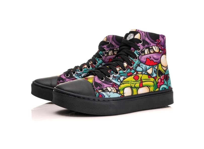 Tênis Cano Alto Estampado Arte Grafite Zombie Zumbi Moda-Unissex