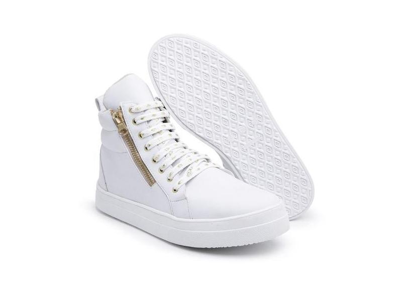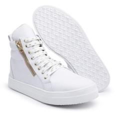 Tênis Cano Alto Feminino Treino Academia Fitness Com Zíper Branco - Za
