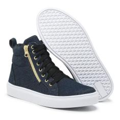 O menor preço encontrado no Brasil para Tênis Cano Alto Feminino Treino Academia Fitness Com Zíper Jeans - Zaf atualmente é R$ 176,61.