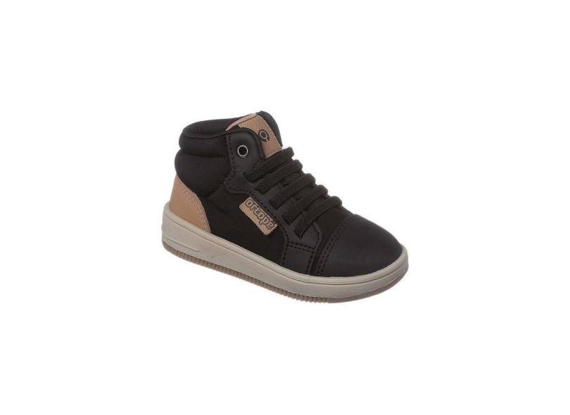 Tênis Cano Alto Infantil Masculino Ortopé Bliss Boot Tecido e Couro Preto