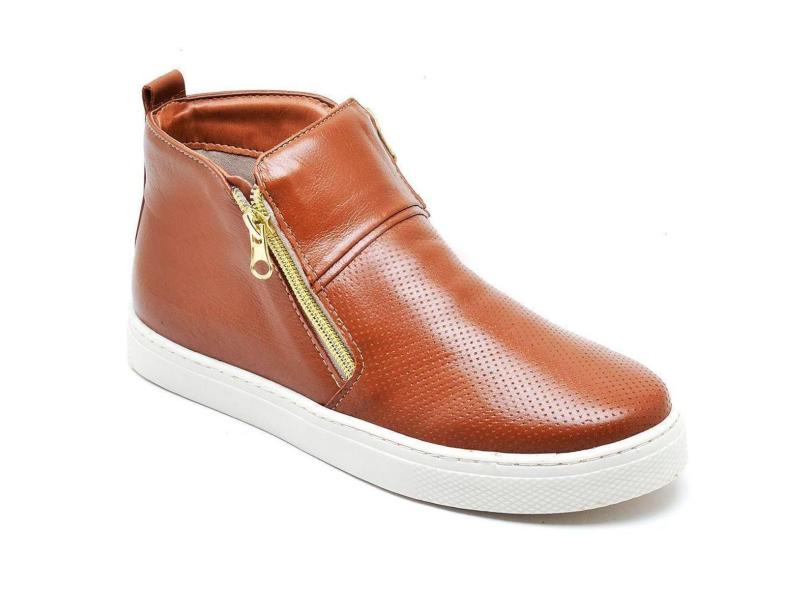 Tênis Cano Alto Slip On em Couro Legítimo Q&A Feminino-Feminino