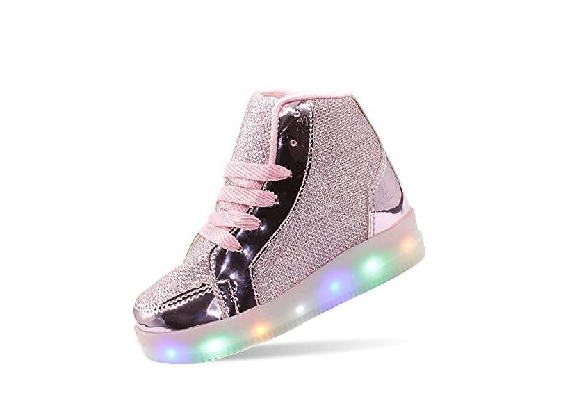 Tênis Cano Medio Luzes de Led Meninas Glitter Espelhado Rosa