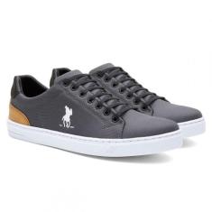 Tênis Casual Com Sola Reta Fecho Em Cadarço E Detalhes Bordados Polo P