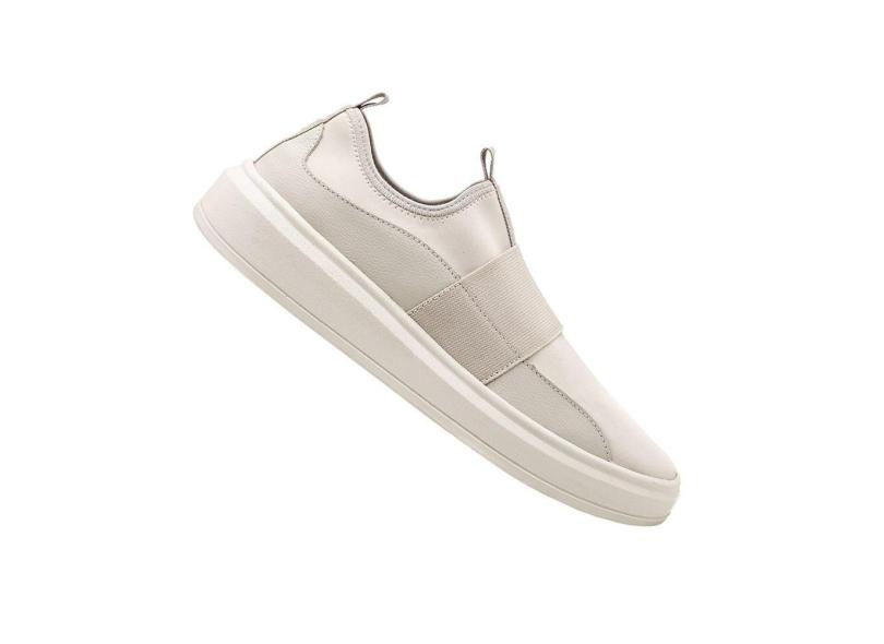 Tenis Casual Couro Collins Masculino Off White Calce Facil Elastico Solado Costurado