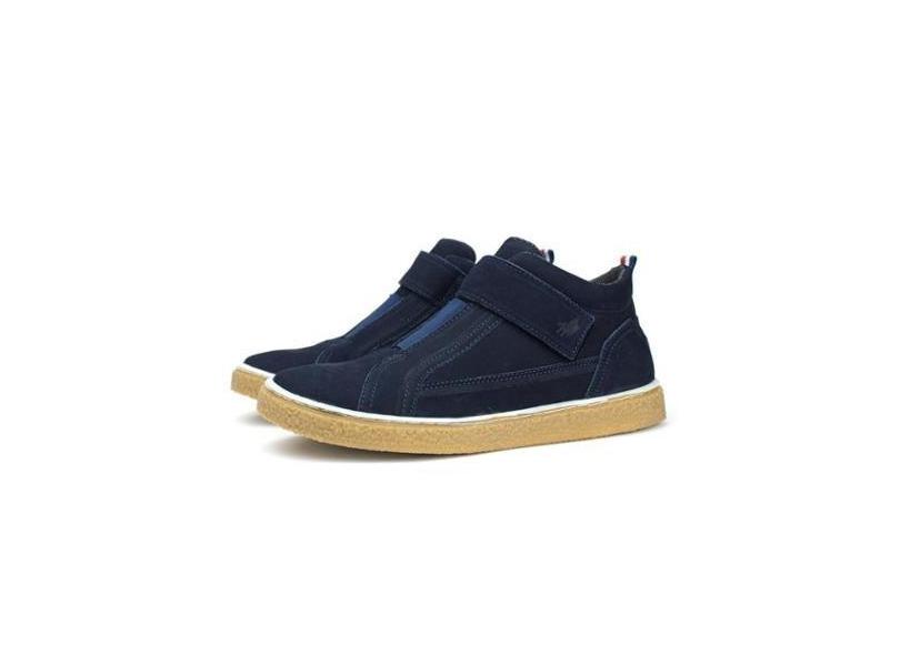 Tênis Casual Couro Masculino Solado Natural Borracha Cano Alto Ajustável Conforto Marinho-Masculino