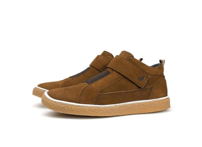 Tênis Casual Couro Masculino Solado Natural Borracha Cano Alto Ajustável Conforto Marrom-Masculino