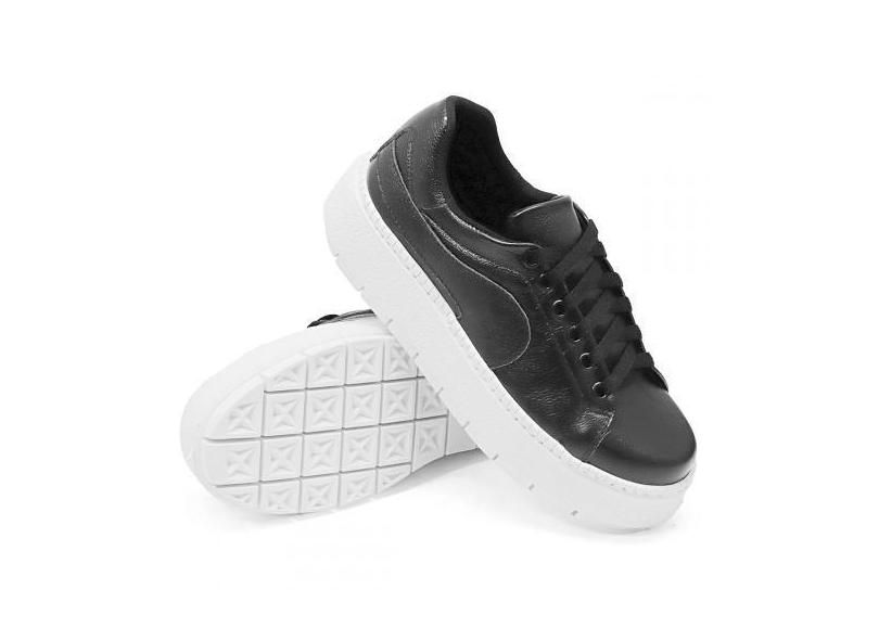 Tênis Casual Em Couro Feminino Conforto E Sola Plataforma Leve - Dk Uz