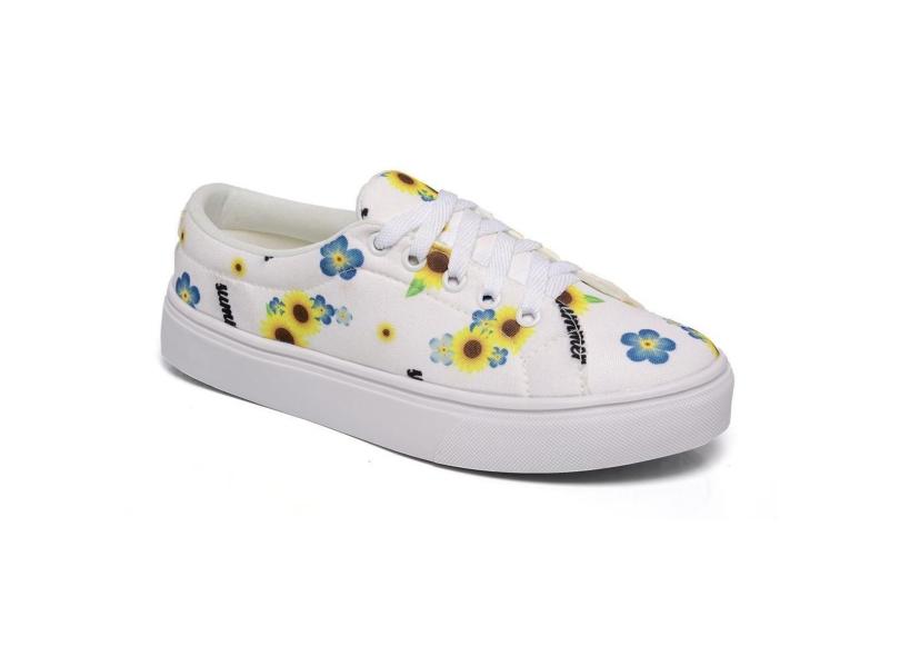 Tênis Casual Estampado Feminino Sola Borracha e Cadarço-Feminino
