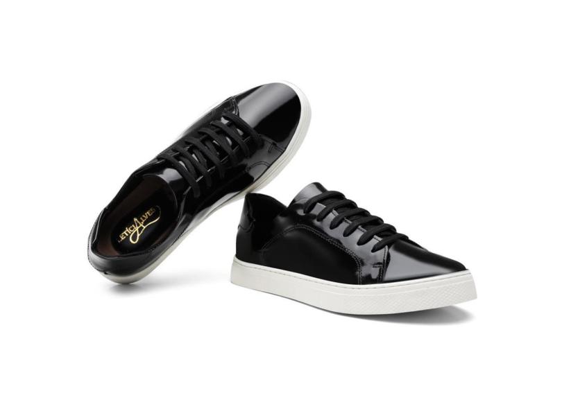 Tênis Casual Feminino Couro Verniz Cadarço Conforto Macio