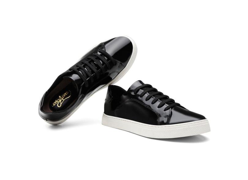 Tenis Casual Feminino Couro Verniz Forrado Cano Curto Com Cadarço Esportivo Caminhada
