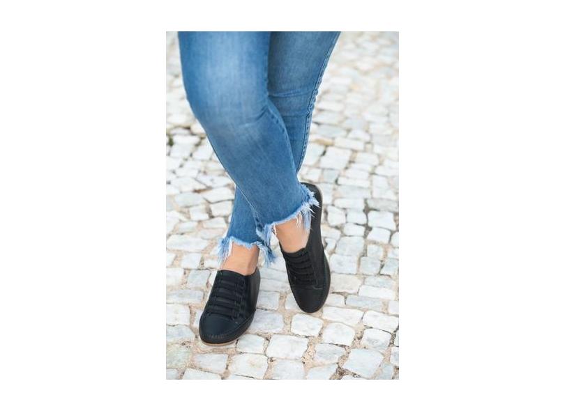 Tênis Casual Feminino de couro confortável Preto - Izabella Araújo, Pr