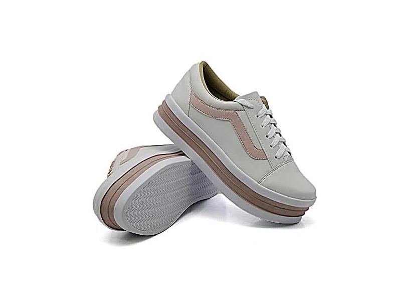 Tenis Casual Feminino Detalhe Recorte Listra Lateral com Sola Alta Reta