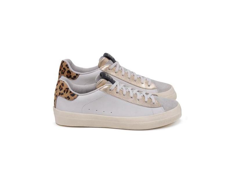 Tênis Casual Feminino Dorf Em Couro Branco Dourado E Onça