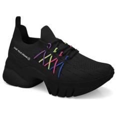 Tênis Casual Feminino Knit Preto Colors Ramarim 2380232-0002-Feminino