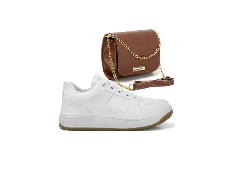 Tênis Casual Feminino Wit Shoes Básico com Bolsa Pequena Caramelo-Feminino