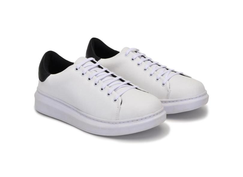 Tênis Casual Masculino Couro Macio Cadarço Liso Moderno-Masculino