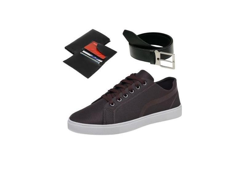 Tenis Casual Masculino Super Macio e Confortável Sola Reta + Cinto e Carteira-Masculino