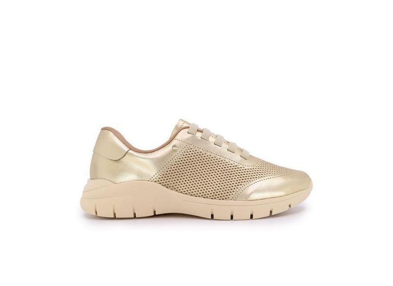 Tênis Casual Metalizado Dourado Couro Detalhe Laser - Usaflex
