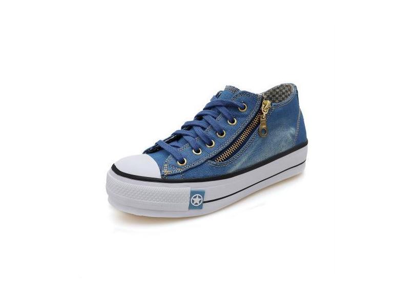 Tenis Casual Plataforma Jeans Feminino Love Star Com Ziper Blogueirinh