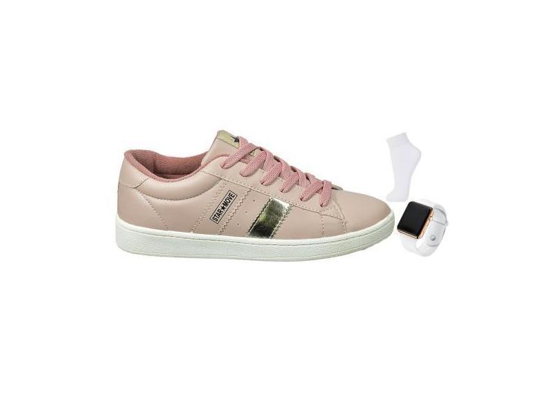 Tênis Casual Star Move Feminino Com Meia E Relógio Leve Confortável Or