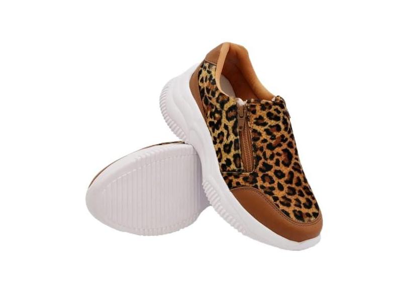O menor preço encontrado no Brasil para Tenis Chunky Feminino Estampa Onça sem Cadarço com Ziper e Sola Alta atualmente é R$ 226,90.