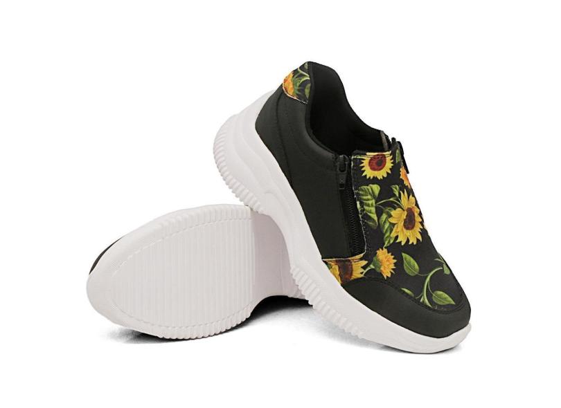 Tenis Chunky Feminino sem Cadarço com Estampa Floral Girassol e Sola Alta-Feminino