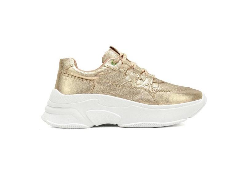 Tênis Chunky Metalizado Sneaker Feminino Robusto Confortável Moderno Dourado-Feminino