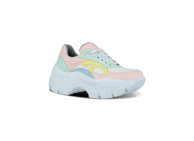 O menor preço encontrado no Brasil para Tênis Colorido Chunky Feminino Sola Alta Estilo Blogueira - E-Commerce atualmente é R$ 167,90.