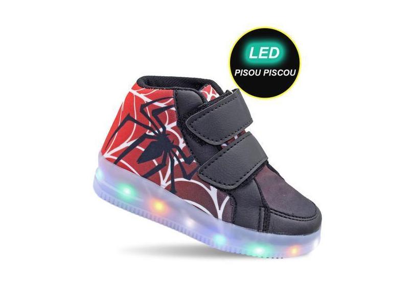 Tenis Com Led Luz Pisca Infantil Aranha Meninos - Eds