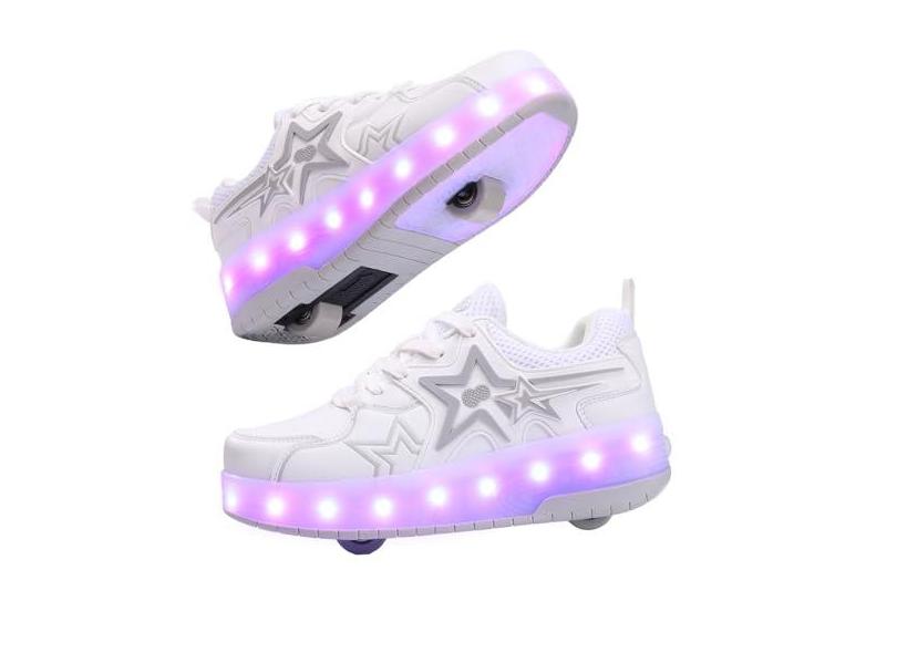 Tênis com rodinhas para crianças, meninos, meninas, moda e divertida, presente de aniversário, Branco, 16