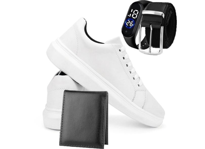 Tênis Confortável Sola Alta Plataforma Sneaker Com Cinto Carteira E Relógio-Masculino