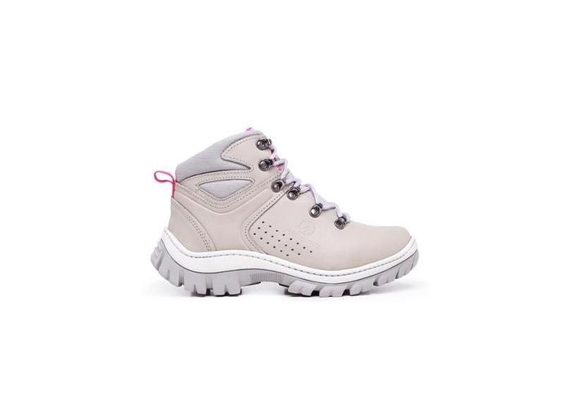 Tênis Coturno Feminino Adventure em Couro Palmilha Gel Solado Antiderrapante Bota C.A - Cinza - 40-Feminino