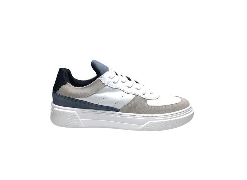Tenis Couro Masculino Cor Branco Com Detalhes Em Gelo E Jeans - James