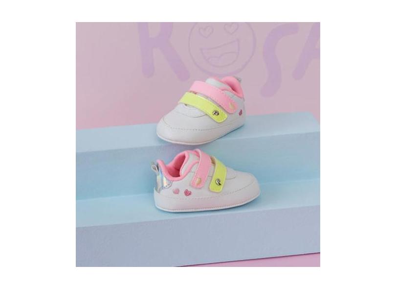 Tênis De Bebê Pampili Nina Bordado Corações Branco E Colorido