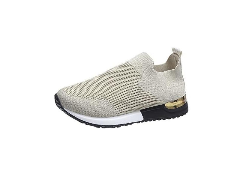 Tênis de caminhada feminino ortopédico clássico sem cadarço confortável de lona para mulheres sapatos de verão, 1 bege, 36
