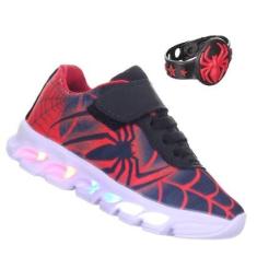 Tenis de Criança Luz de Led Calçado Infantil Personagem Aranha Menino-Masculino