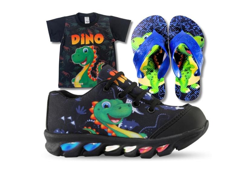O menor preço encontrado no Brasil para tenis de led infantil masculino dinossauro com luzinha meninos mais chinelo e camisa-Masculino atualmente é R$ 119,90.