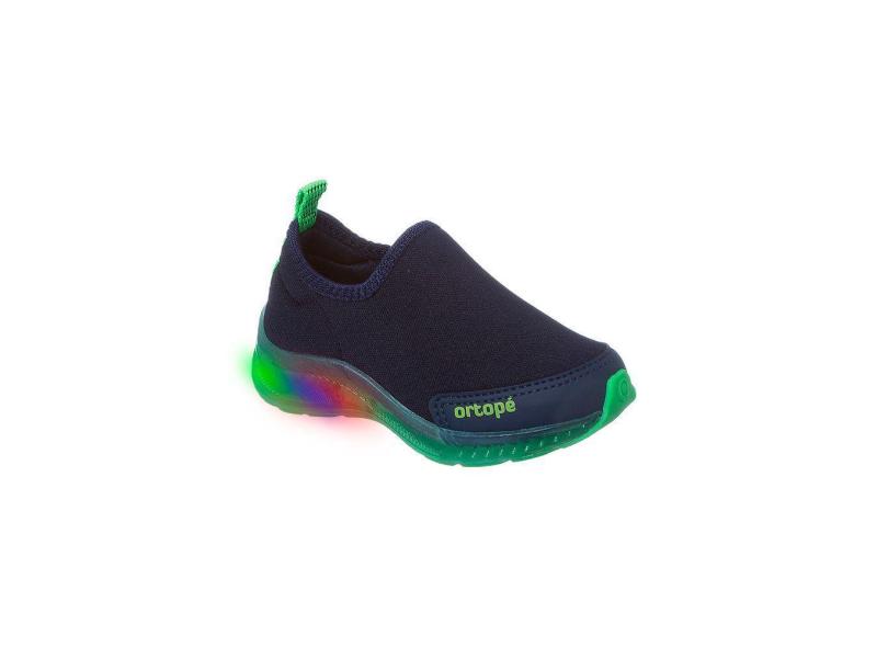 Tênis de Led Infantil Masculino Ortopé Dna Light Calce Fácil Azul Marinho e Verde