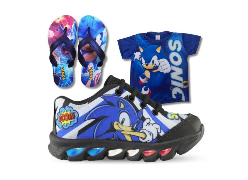tenis de led infantil masculino sonic boom com luzinha meninos mais chinelo e camisa-Masculino