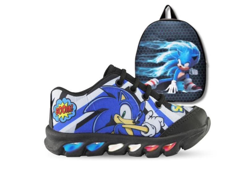 tenis de led infantil masculino sonic boom com luzinha meninos mais mochila-Masculino