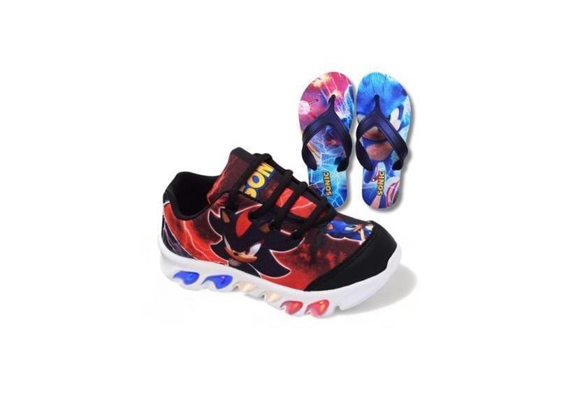 tenis de led infantil masculino sonic shadow com luzinha meninos mais chinelo-Masculino