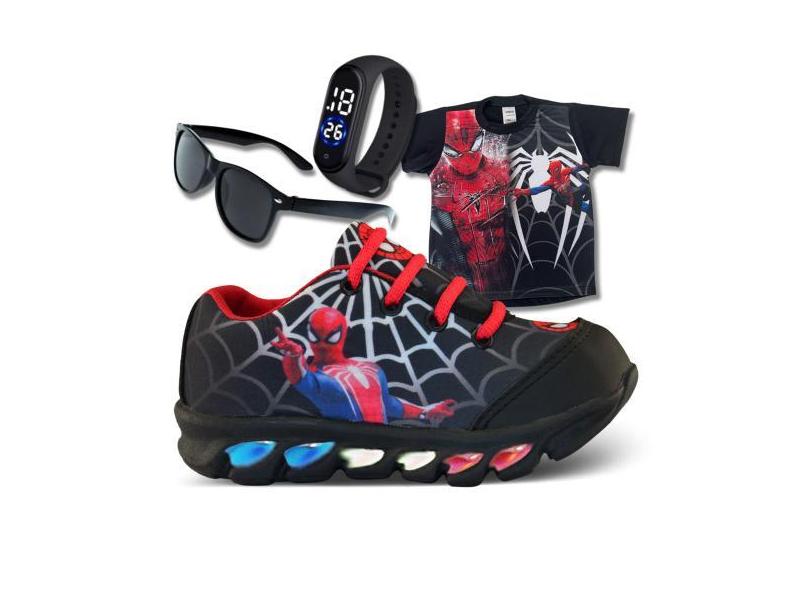 O menor preço encontrado no Brasil para Tênis De Led Infantil Menino Aranha Masculino + Camisa + Relógio + Ócu atualmente é R$ 119,90.