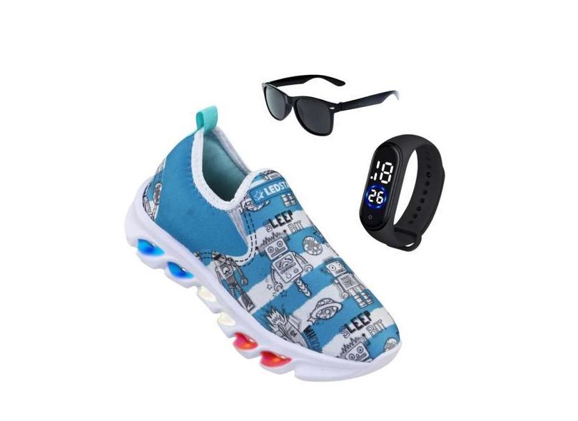 Tenis de led infantil meninos Ledstar calce facil Robô desenhos Luzinh