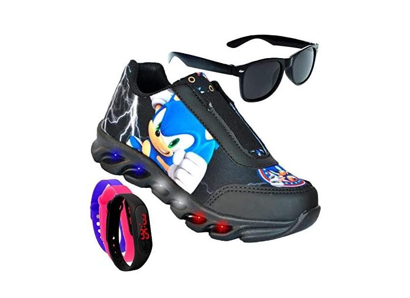 Tenis De Led Masculino Calce Facil Infantil Meninos Estilo Original + Brindes Cor:Preto;Tamanho:29