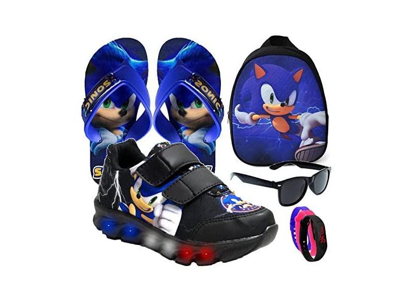 Tenis De Led Masculino Calce Facil Infantil Meninos Estilo Original + Mochila Chinelo. Cor:Preto;Tamanho: