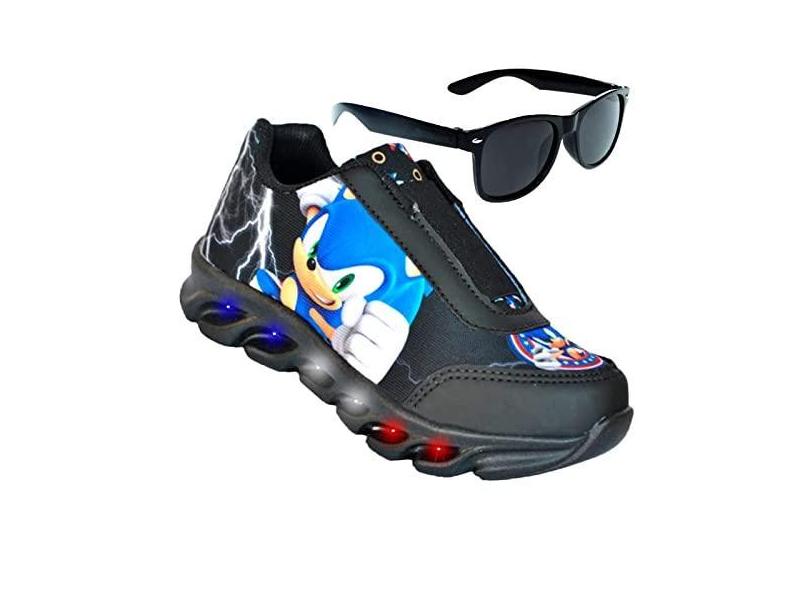Tenis De Led Masculino Calce Facil Infantil Meninos Estilo Original + Oculos Cor:Preto;Tamanho:26
