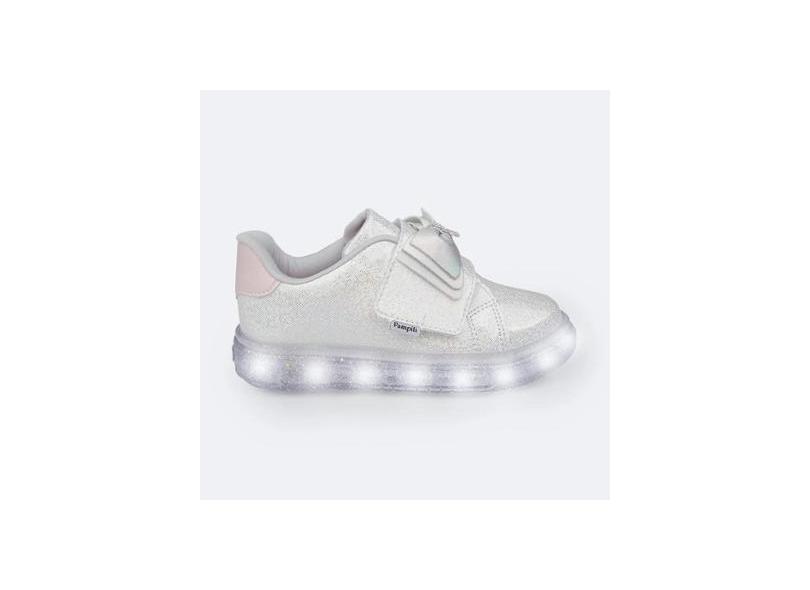 Tênis de Led Pampili Infantil Sneaker Luz Foil Laço Branco-Feminino