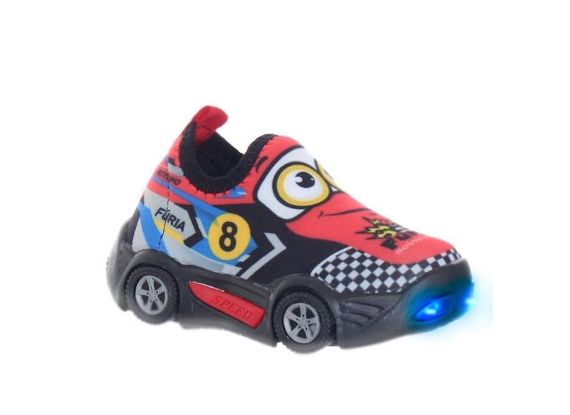 Tenis De Luz Led Menino Carrinho Preto vermelho infantil bebe masculino-Masculino